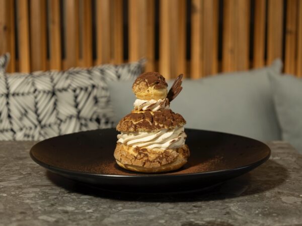 Αφράτα choux γεμισμένα με βελούδινη κρέμα τιραμισού πασπαλισμένα με κακάο, για να αποτελέσουν το πιο εκλεπτυσμένο επιδόρπιο που συνδυάζει τη γαλλική τεχνική με την κλασική
