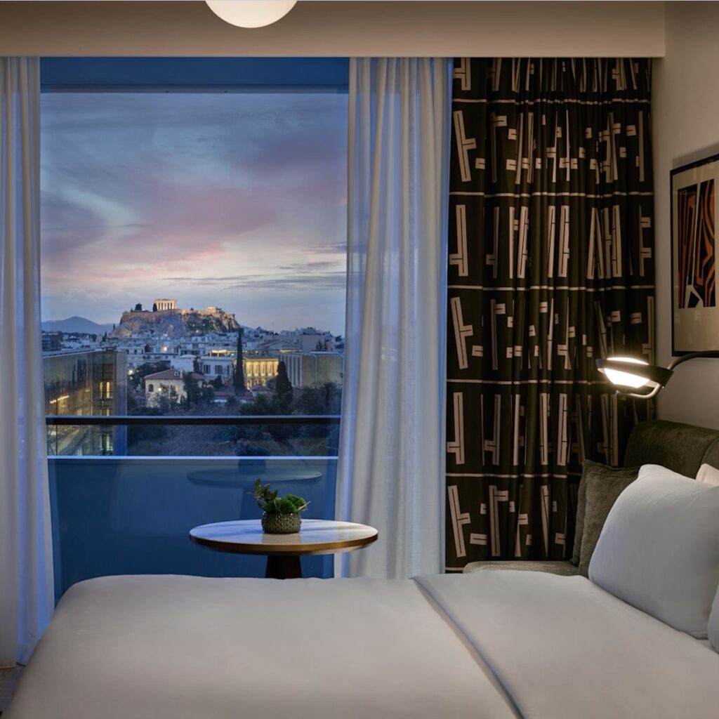 Στην “καρδιά” του συγκροτήματος βρίσκεται το νέο ξενοδοχείο με 307 δωμάτια και σουίτες με θέα προς την Ακρόπολη, με τιμές που ξεκινούν από περίπου 600 ευρώ τη βραδιά, ενώ το project περιλαμβάνει επίσης πολυτελείς ιδιωτικές κατοικίες (Conrad και Waldorf Astoria Residences), εστιατόρια, χώρους ευεξίας και άθλησης, καθώς και τη σύγχρονη λέσχη μελών House of NYNN, δημιουργώντας ουσιαστικά έναν “προορισμό μέσα στην πόλη”.