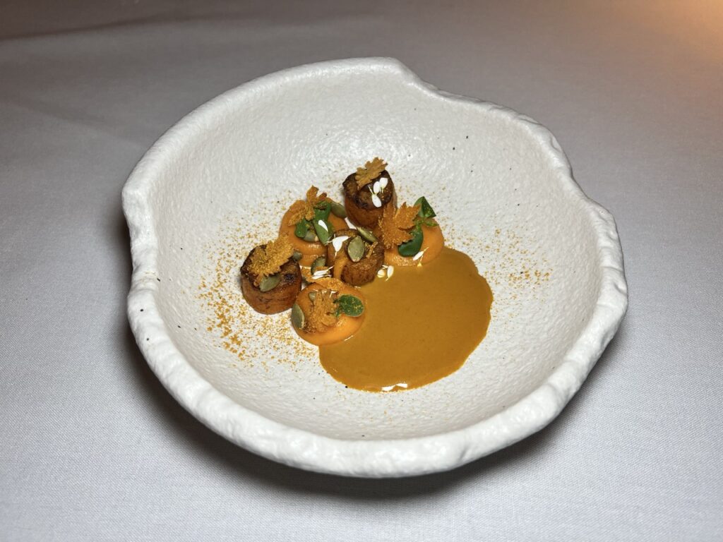 Our journey of flavours travelled across the globe: clams with seaweed and caviar; foie gras paired with smoked eel and aged balsamic from Modena; and exquisite violet prawns elevated with coriander, chilli and Assyrtiko. Sweet potato and pumpkin shone in an aromatic Thai curry, while the impressive grand finale brought together turbot, wagyu, celeriac and truffle on the same plate.