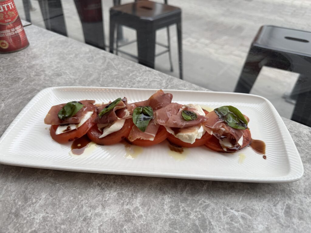 Οι φίλοι του Prosciutto di Parma θα ερωτευτούν το αντίπαλο δέος, που δεν είναι άλλο από τη σαλάτα με Fior di latte, ροδέλες ζουμερής ντομάτας και παλαιωμένο βαλσαμικό ξίδι, ραντισμένη απλά με ποιοτικό έξτρα παρθένο ελαιόλαδο.