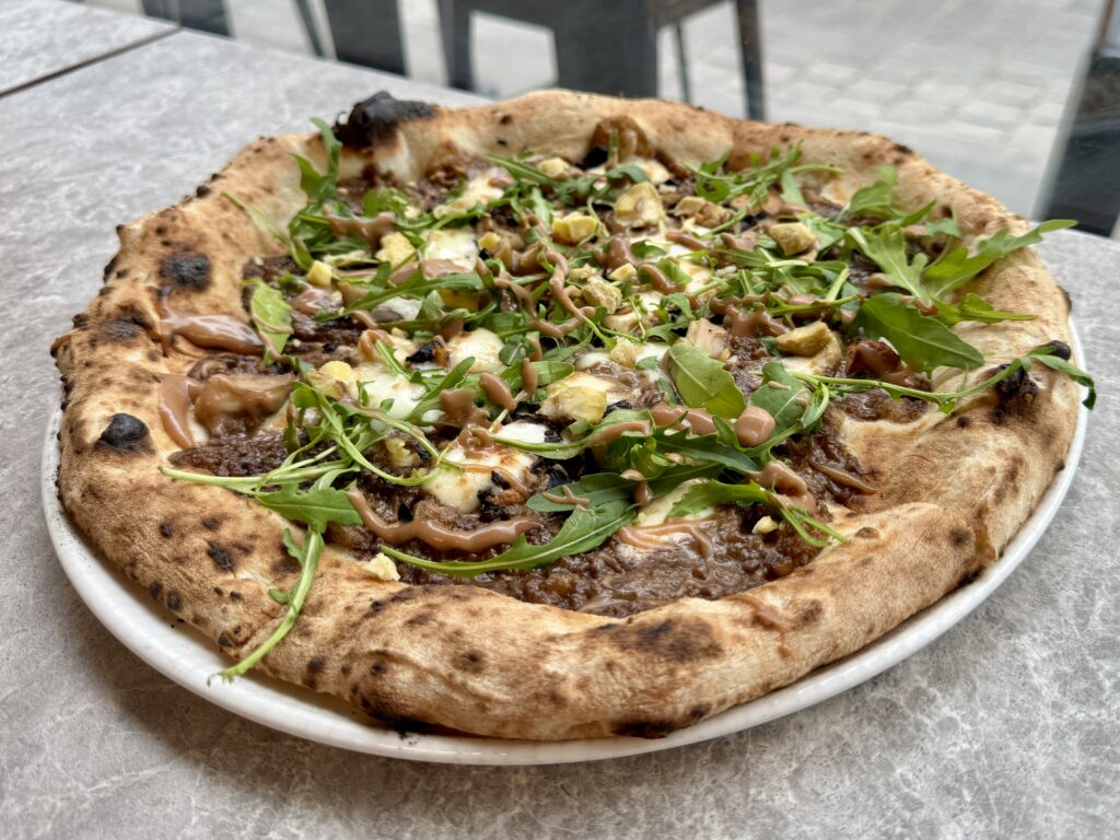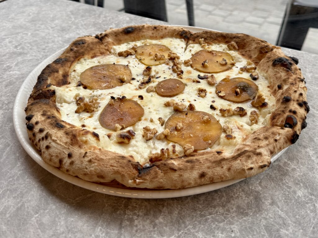 Ύστατο χαίρε στην απίστευτα ισορροπημένη special πίτσα της Biga, την Bianca alla Pera, τη νεοαφιχθείσα πρόταση με βάση από κρέμα μασκαρπόνε, εμπλουτισμένη με gorgonzola και μοτσαρέλα, υπέροχα σε δάγκωμα καραμελωμένα αχλάδια, με κερασάκι στην όλη δημιουργία, τα καβουρδισμένα καρύδια.