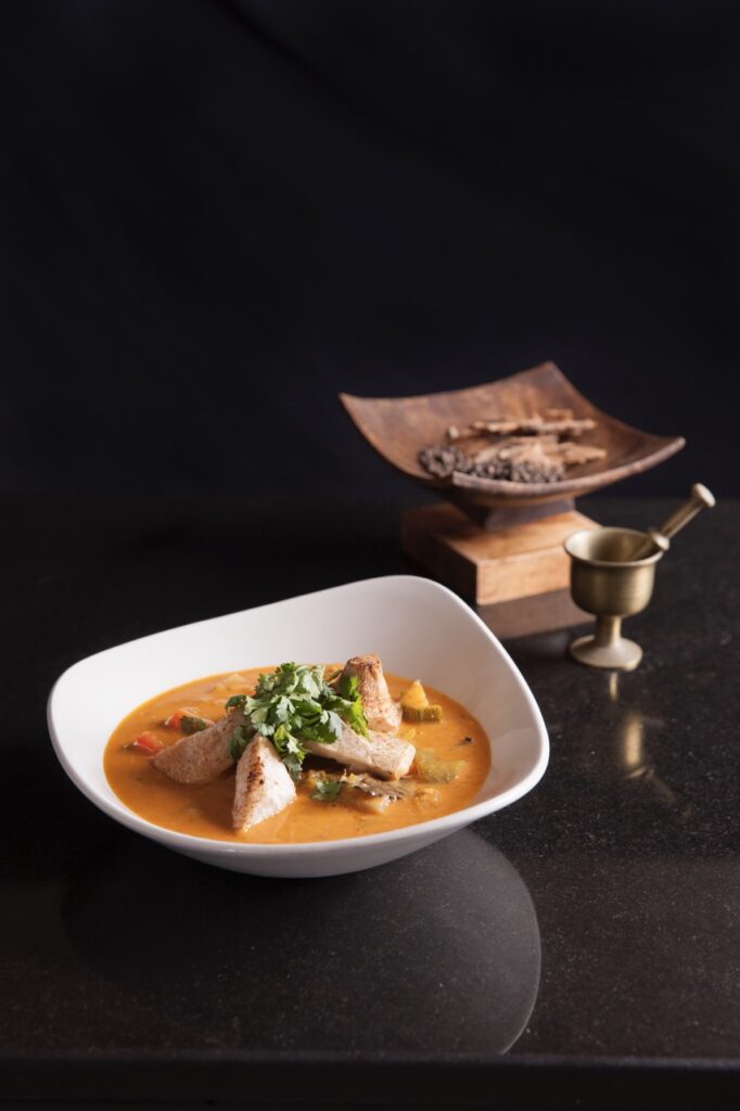 Κόβουμε το κολοκάσι και το αρνί σε μικρά κομμάτια και τα τσιγαρίζουμε σε καυτό λάδι. Μετά βάζουμε σε άλλη κατσαρόλα το ελαιόλαδο να ζεσταθεί και σοτάρουμε το ψιλοκομμένο κρεμμύδι με το σκόρδο, το τζίντζερ και το lemongrass μέχρι να μαλακώσουν, χωρίς όμως να κοκκινίσουν. Προσθέτουμε μέσα την curry paste και σοτάρουμε για 1 λεπτό. Μετά προσθέτουμε μέσα το κολοκάσι, μετά το ζωμό και αλατοπιπερώνουμε. Στη συνέχεια καλύπτουμε με το νερό και ψήνουμε για 40 λεπτά. Τέλος προσθέτουμε το coconut milk και ψήνουμε για ακόμα 10 λεπτά.