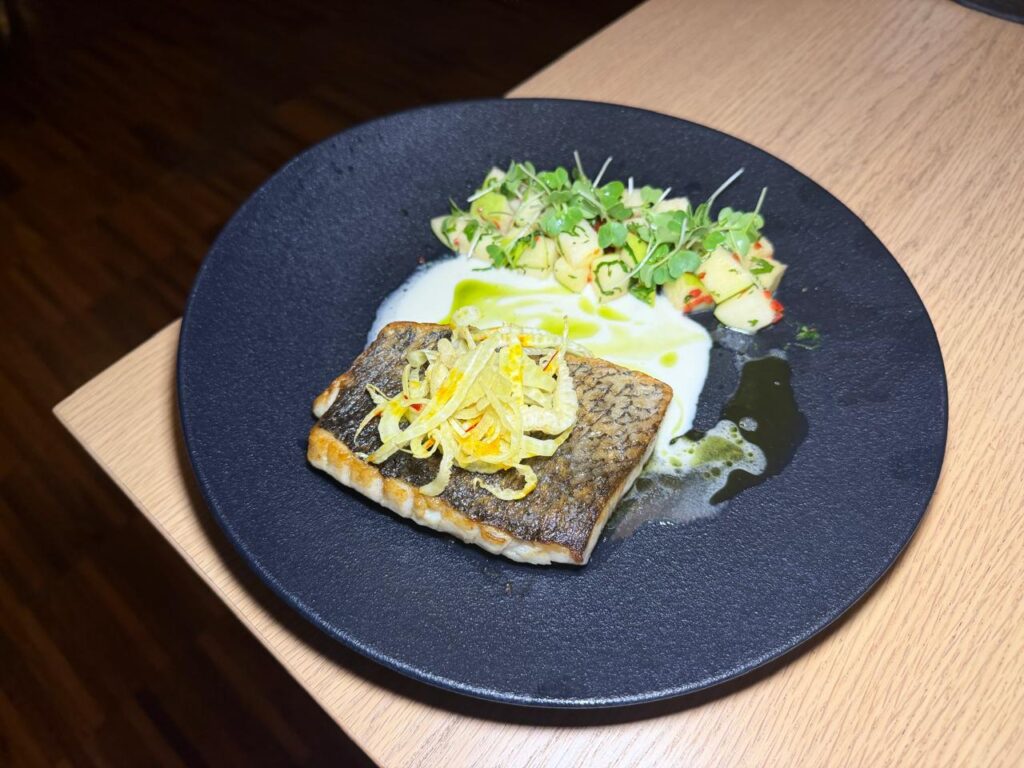 Στα κυρίως, το φιλέτο μυλοκόπι αποδεικνύει πως η απλότητα, όταν γίνεται σωστά, είναι αρετή. Πράσινο μήλο, chili, κόλιανδρος, άγριος μάραθος. Φρεσκάδα, καθαρότητα και – κυρίως – ένα ψήσιμο υποδειγματικό. Το μήλο δίνει εκείνη τη μικρή ανατροπή που κρατά το ενδιαφέρον μέχρι το τέλος.