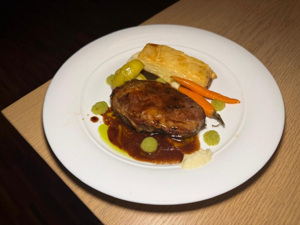 Το Iberico secreto, αργομαγειρεμένο και καραμελωμένο, έρχεται πιο γήινο. Πουρές σελινόριζας, ψητό μήλο, καρότα και πατάτες. Πλούσιο, αλλά όχι βαρύ. Ένα πιάτο που σε κρατά εκεί, χωρίς να σε κουράζει.