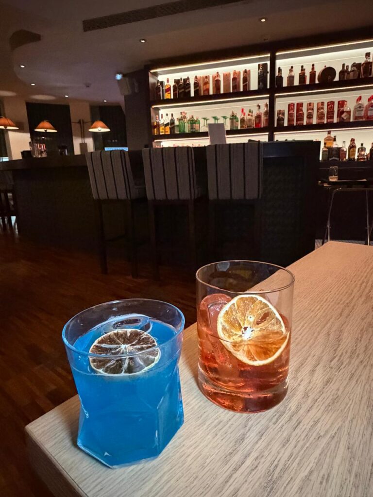 Το έμπειρο προσωπικό, που έχει χρόνια πολλά στην πλάτη του στον χώρο της φιλοξενίας, είναι εκεί – όχι για να σε “καθοδηγήσει”, αλλά για να σε ταξιδέψει. Και το κάνει σωστά. Ξεκίνημα με ένα αριστοτεχνικά φτιαγμένο Negroni και ένα δροσερό Blue Bar mocktail με blue curaçao, non-alcoholic gin και lime. Η αρχή… όπως πρέπει για να μπεις σιγά σιγά στη διάθεση και να αντιληφθείς τη φιλοσοφία του χώρου.