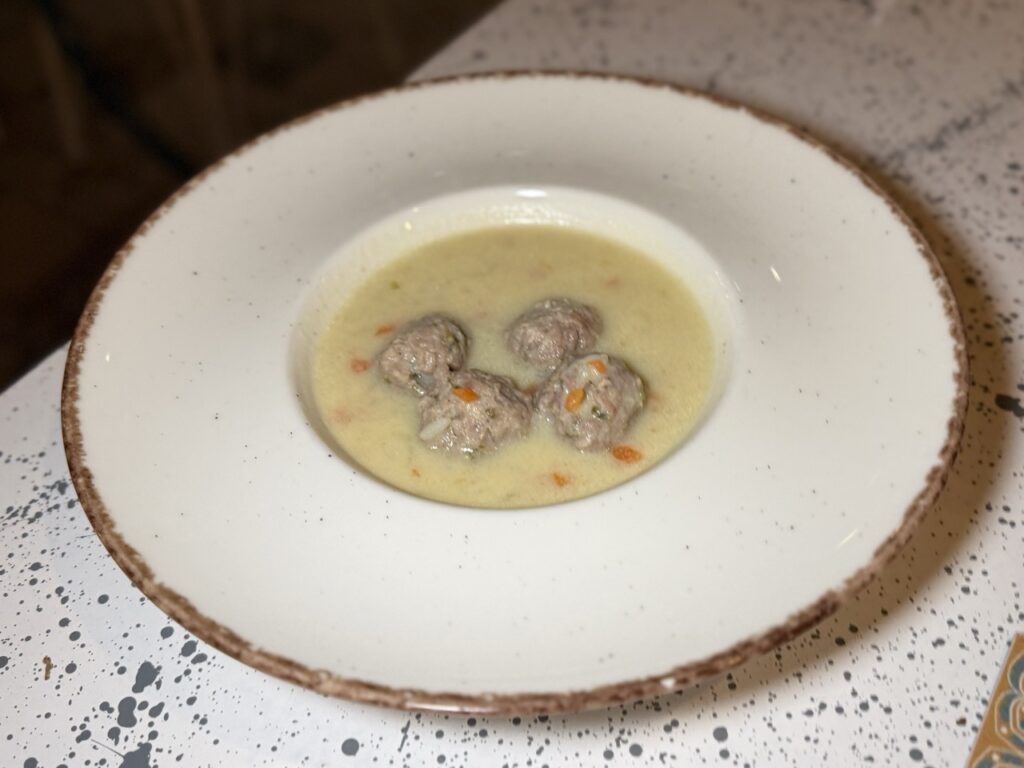 Negroni, ζεστό αρωματικό κρασί Glühwein και μια φιάλη από ερυθρό κυπριακό κρασί στο τραπέζι μας και με χαρά αποδεχόμαστε την πρόταση του προσωπικού εξυπηρέτησης για ξεκίνημα με τη σούπα ημέρας, που δεν ήταν άλλη από αυτή με γιουβαρλάκια.