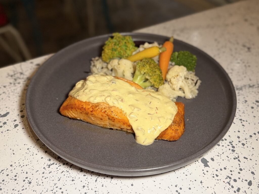 With plates and cutlery changed, and our spirits lifted by the diverse repertoire of our talented vocalist, we return to sharing flavours and experiences. Highlights include shrimp kritharoto, gently infused with a well-balanced bisque and feta, as well as salmon fillet served with al dente wild rice and a creamy saffron sauce.