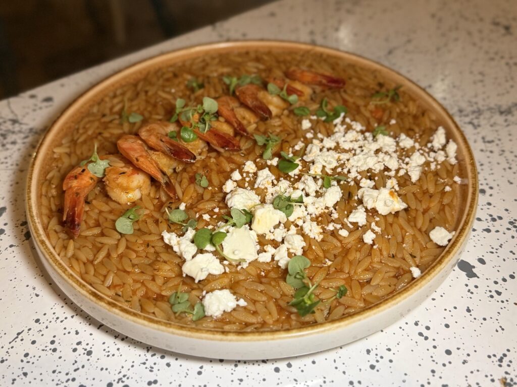 Αλλαγή πιάτων και μαχαιροπίρουνων και, με ανεβασμένη διάθεση από το πολυποίκιλο ρεπερτόριο της καλλίφωνης τραγουδίστριάς μας, μοιραζόμαστε ξανά γεύσεις και εμπειρίες, δοκιμάζοντας όλοι λίγο από το κριθαρότο με γαρίδες, νοτισμένο με ισορροπημένο bisque και φέτα, αλλά και φιλέτο σολομού, πλαισιωμένο με al dente άγριο ρύζι και κρεμώδη σάλτσα σαφράν.