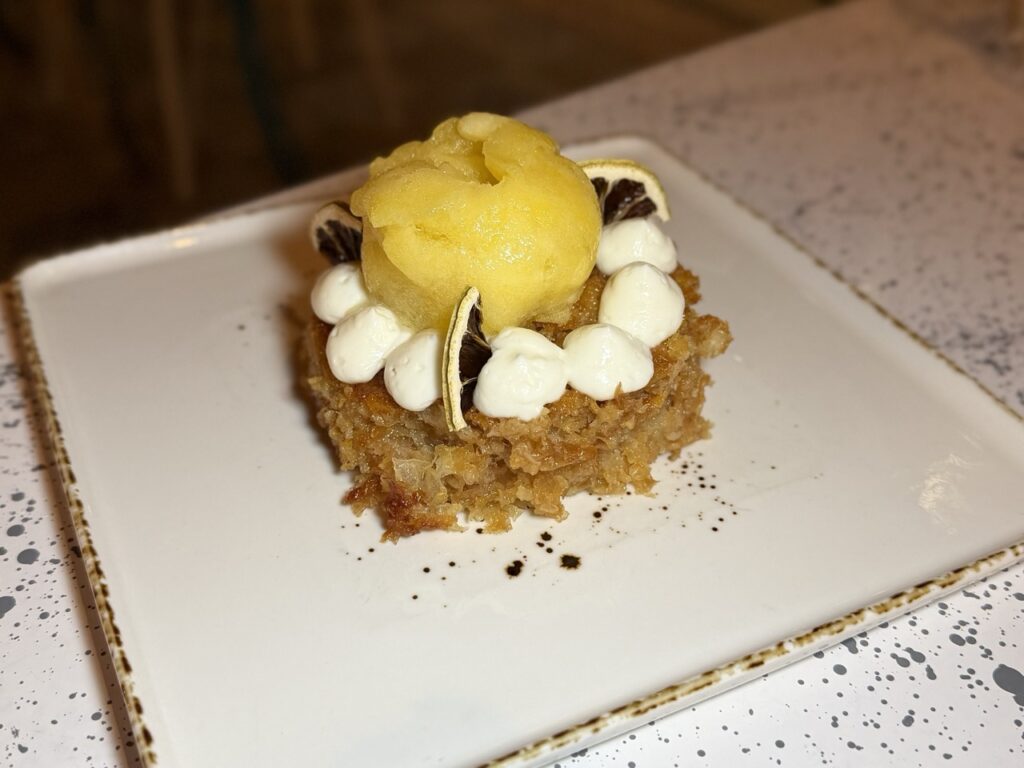 Negronis, a warming glass of aromatic Glühwein and a bottle of Cypriot red wine set the tone at our table, and we happily accept the staff’s suggestion to begin with the soup of the day: traditional giouvarlakia. Perfectly prepared meatballs in a light, lemony broth enriched with vegetables and herbs offer a comforting start, soon followed by golden halloumi rolls generously scented with fresh mint. All that’s left to do is pair their salty bite with the sweetness of the fig jam served alongside.