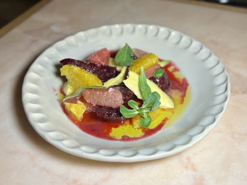 Take, for example, the Kirsch cocktail (vodka infused with dates) or the non-alcoholic Kiwi Tarragon: both harmonize perfectly with a roasted beet and seasonal citrus salad, buttery avocado, and refreshing purslane.