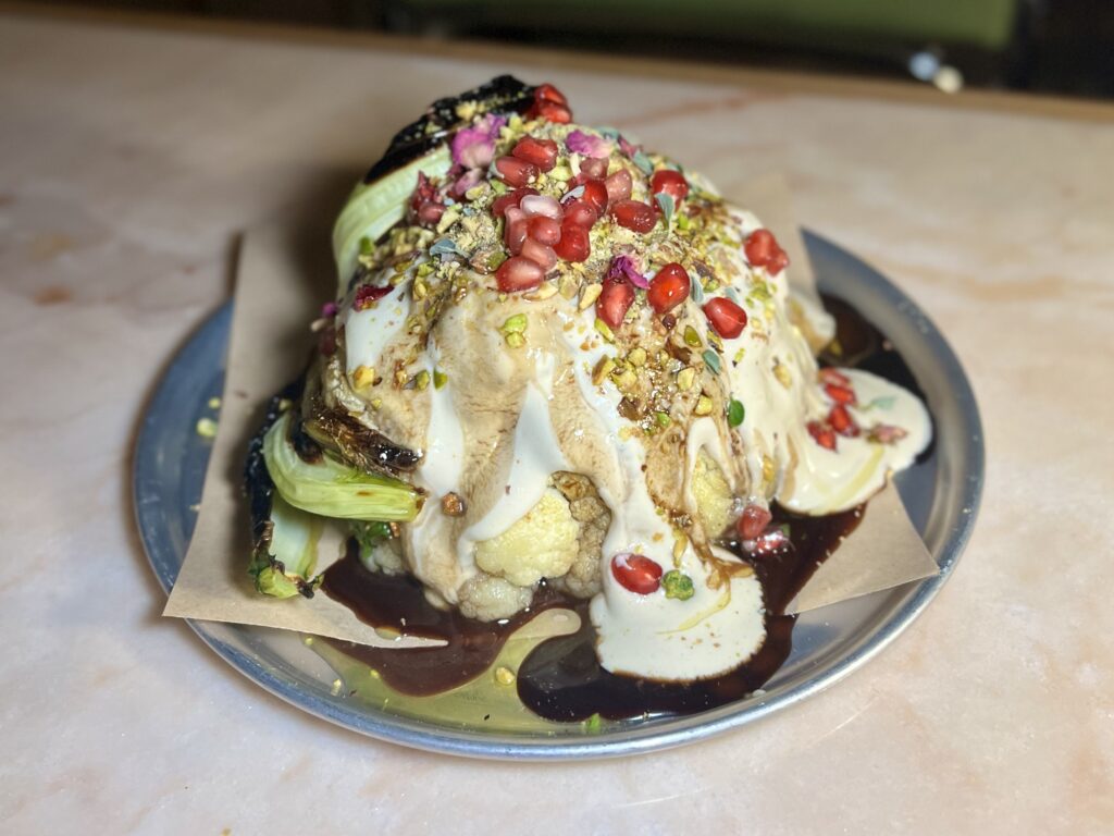 Ο πήχης ανέβηκε με το ξεκίνημα – ή για να το πω πιο λιανά, πριν το ξεκίνημα – με το που τρύπησε τα ρουθούνια μας το flat pita bread που σερβίρεται με άριστο λευκό ταραμά και αυγοτάραχο, αλλά και το αφράτο Hallah brioche, που θα το βουτήξεις σε λατρεμένο σπιτικό ταχίνι, το οποίο οι σεφ έχουν ραντίσει με μια κουταλίτσα zhug, έτσι για να εισπράττεις στο τέλος μια πιπεράτη αίσθηση από την παραδοσιακή καυτερή πράσινη σάλτσα με βάση τα φρέσκα βότανα και τις πιπεριές τσίλι.