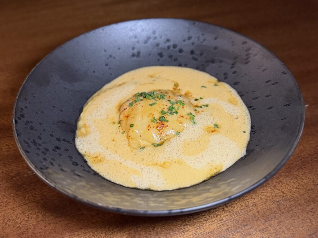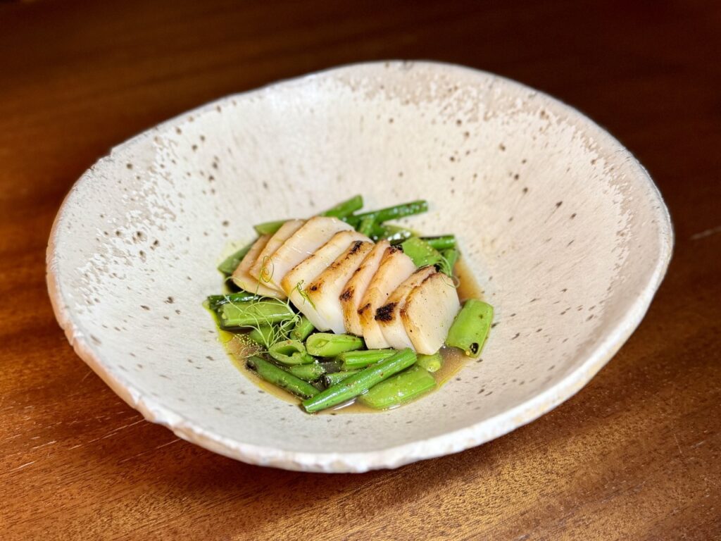 Το χειροποίητο, μεγάλων διαστάσεων raviolo με γέμιση από αστακό, στο προσκήνιο, για να γλυκάνει το στόμα με το πληθωρικό συνονθύλευμα στο οποίο πρωταγωνιστεί το γλυκό καλαμπόκι και το διακριτικό curry. Υπόκλιση στον σεφ για ένα πιάτο-σταθμό για το Cor Gastronomy, που δεν είναι άλλο από τα φρεσκότατα χτένια με μοσχομπίζελα, που υγραίνονται όλα από έναν πολυδιάστατο, γεμάτο από ουμάμι, ζωμό dashi, που από μόνος του αξίζει ειδικής επίσκεψης για να τον δοκιμάσεις.