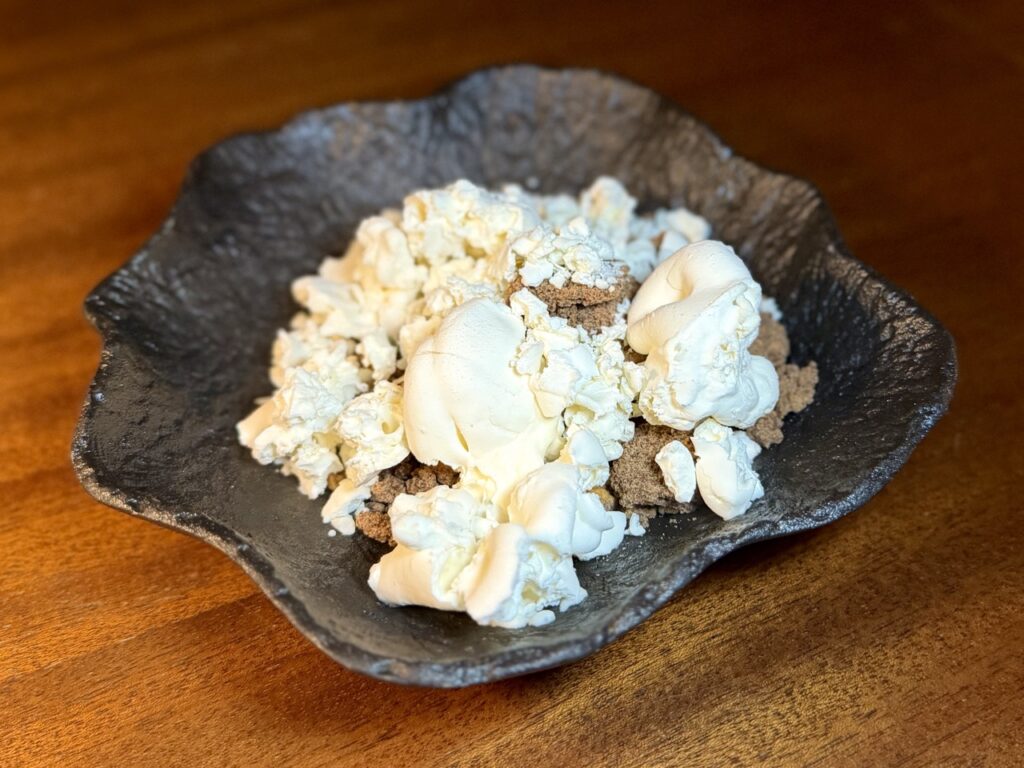Special mention goes to the dessert worthy of its own award: the frozen aged Camembert cheese with carob-honey crumble, charcoal-infused ice cream and mountain thyme. A dessert with French finesse and Cypriot character — a model for all chefs who honour their local flora and fauna when creating.
