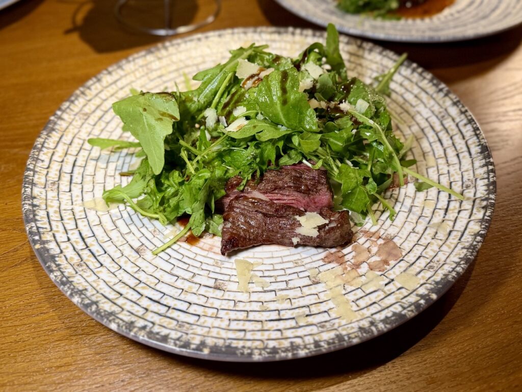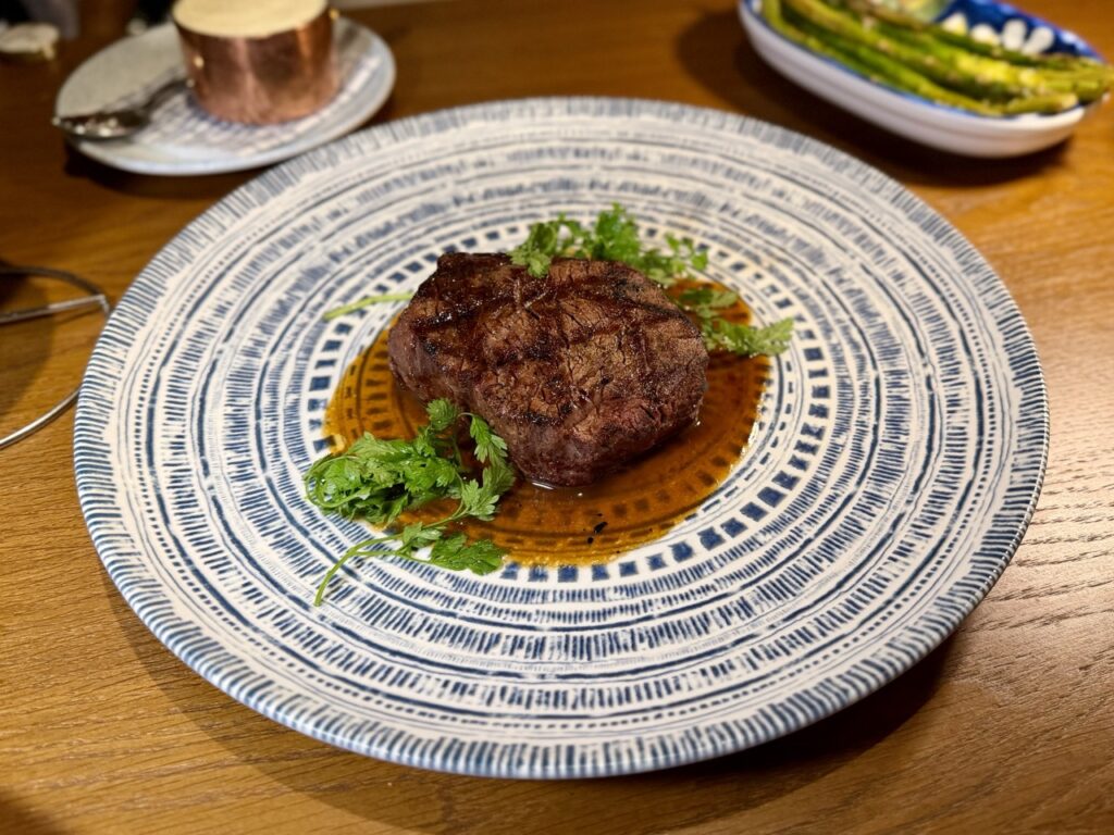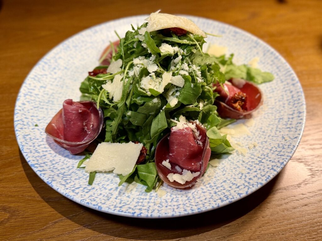 A glass of red Valpolicella in hand sets the scene perfectly for the arrival of the tagliata made from American sirloin, as well as the incredibly tender beef fillet—both expertly cooked in the wood-fired oven.