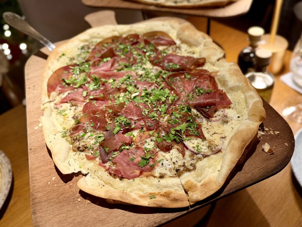 Οι ιδιαίτερα λεπτόφυλλες πίτσες του Little Italy θα κάνουν τη διαφορά, ειδικά αν ψηφίσεις κι εσύ αυτή με φιλετάκια φρέσκιας μαύρης τρούφας ή με αλλαντικά ωρίμανσης, όπως αυτή με bresaola και μια ιδέα από κρεμμύδι.