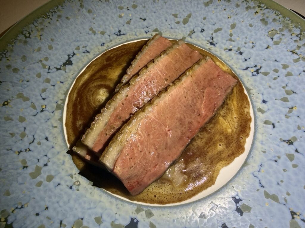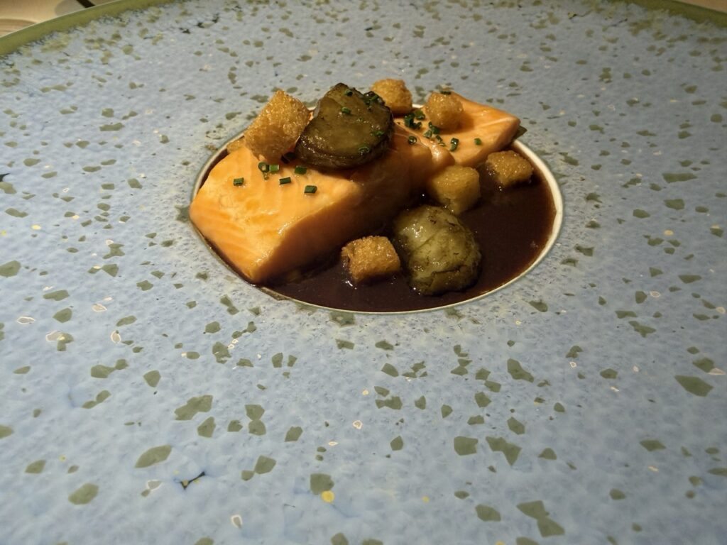 This was followed by confit trout, notably aged beforehand, accompanied by a Genevoise sauce, roasted bone marrow and brioche croutons. A dish of depth, intensity and earthy character that left a lasting impression.