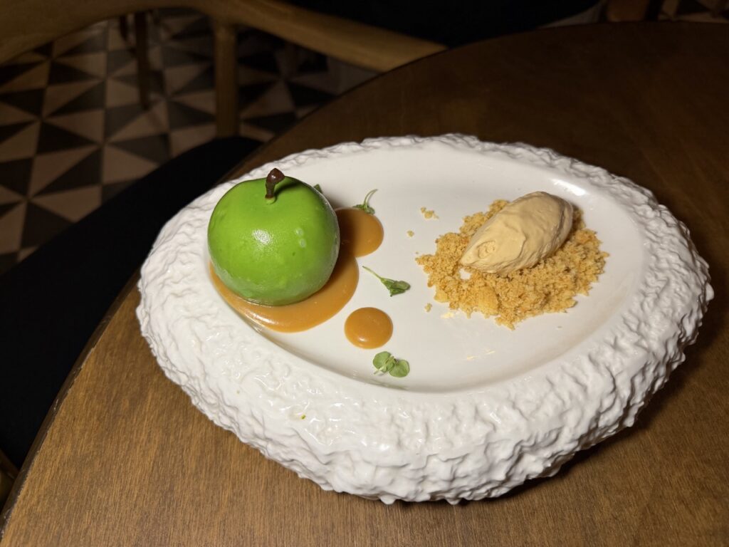 We couldn’t help but envy the neighboring table, where everyone unanimously chose the apple-shaped dessert. Naturally, we followed suit – and I wholeheartedly recommend it.