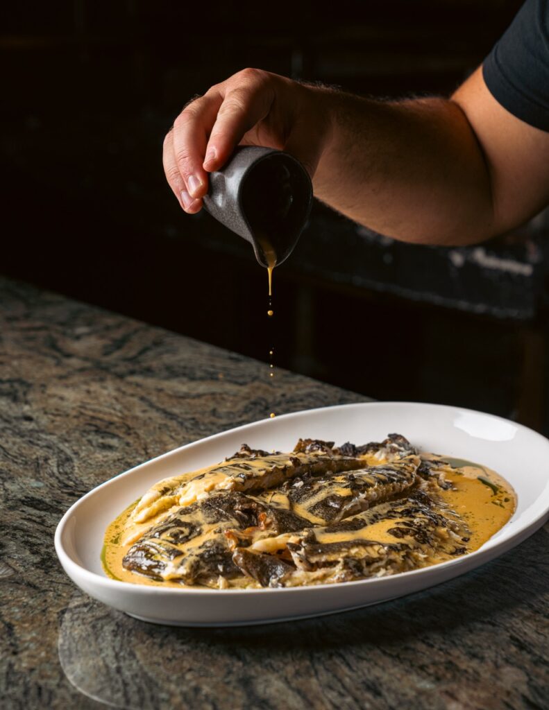Το μενού περιλαμβάνει εκλεκτά πιάτα τόσο από την ‘ξηρά’ όσο και από τη ‘θάλασσα’, όπως: