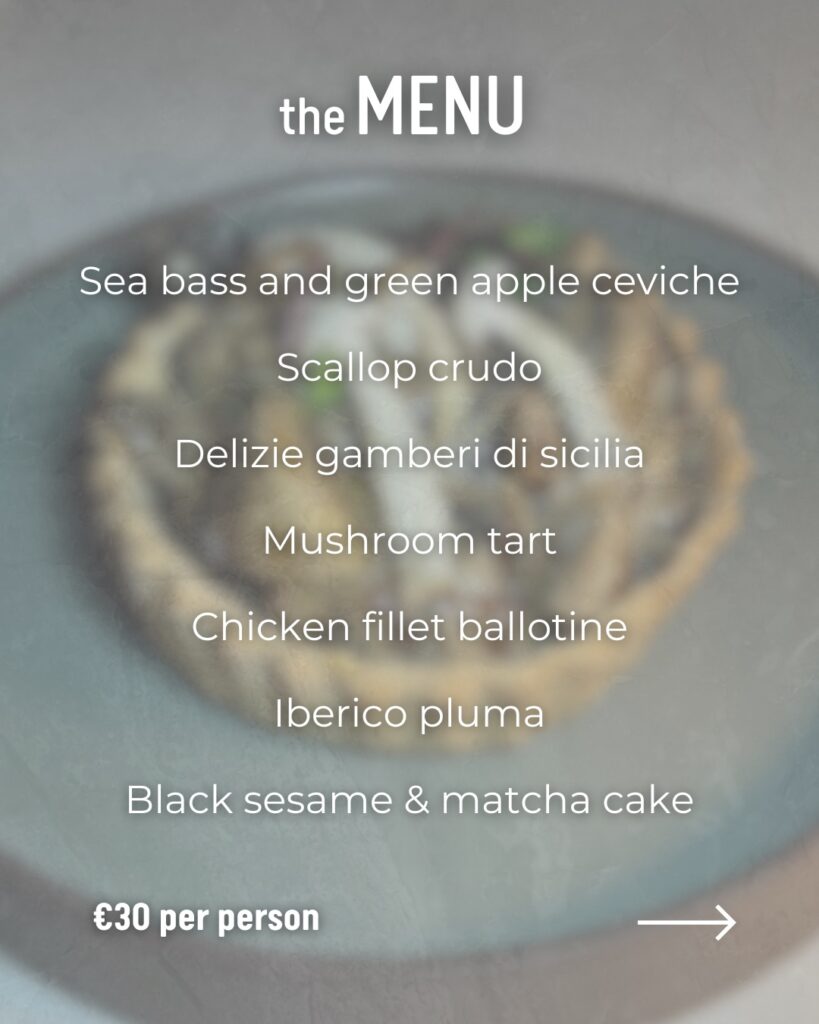 An evening dedicated to flavor, creativity, and craftsmanship, offered at the special introductory price of just €30 per person.