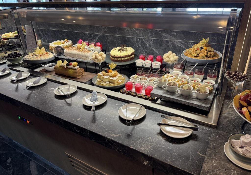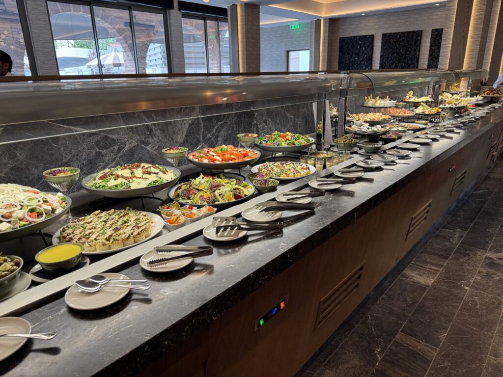 And then comes the best part: plate in hand—just like our group—you’ll begin exploring a buffet bursting with flavours and aromas from across the globe. Beautifully presented dishes, a wide variety of salads and appetizers from every corner of the world, plenty of options for every dietary lifestyle, hearty mains that are sure to please, and live cooking stations where chefs are ready to take your order and serve up your favourite dishes, made just for you.
