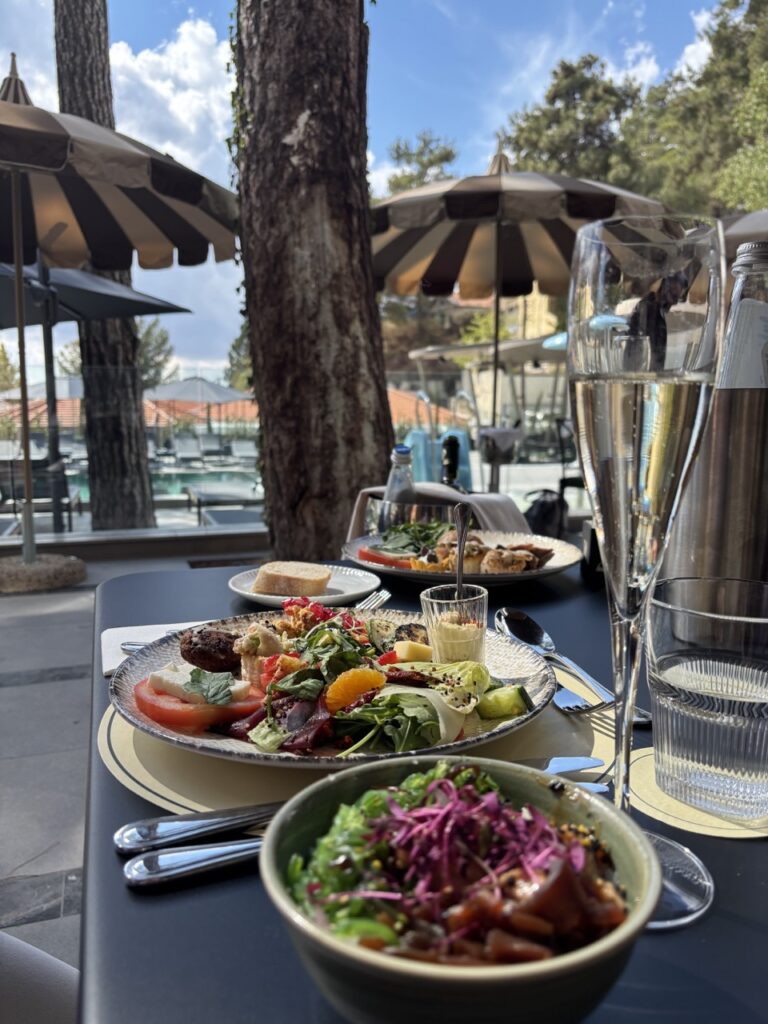 Whether you choose to dine indoors or outside under the towering pine trees, with views of the pool and the lush mountain landscapes of Limassol, one thing’s for sure: the atmosphere will be on your side.